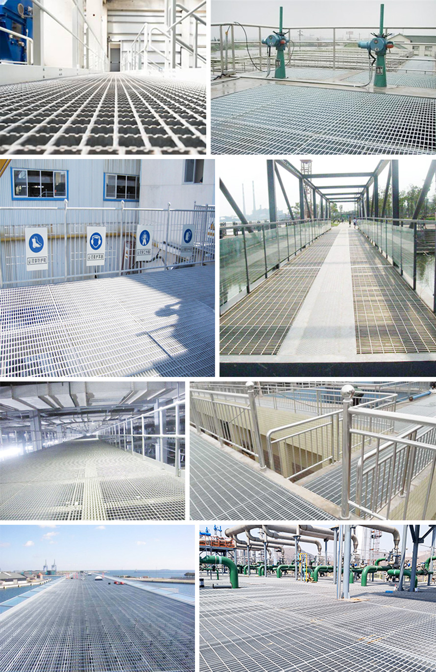 主要用作工業(yè)平臺,鍋爐平臺,環(huán)保設備,梯踏板,扶欄,通道地板,鐵路橋側(cè)道,高空塔架平臺,排水溝蓋,井蓋,道路隔柵,立體停車場,機關、學校、工廠、企事業(yè)、運動場、也可用作民宅的外窗,陽臺護欄,高速公路、鐵路的護欄等。